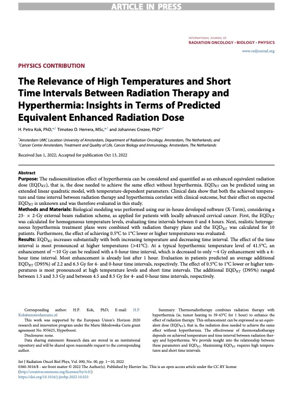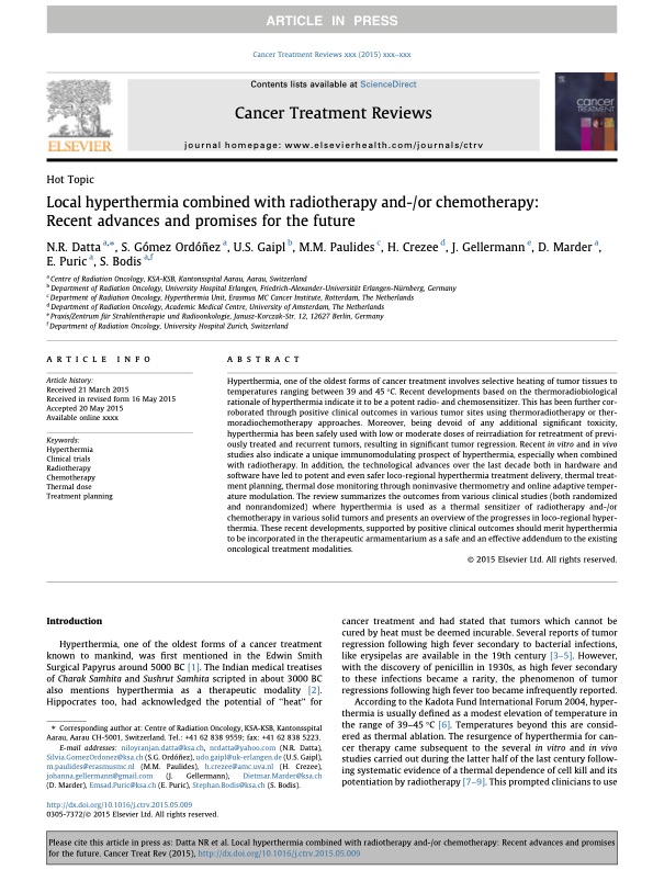 Hyperthermia (HT), heating tumors in the range 41-43°C, is a powerful radio and chemosensitizer. The effectiveness of HT as well as its safety, in combination with radiotherapy and chemotherapy, has already been proven in phase III clinical trials particularly in patients with very large or very advanced stages of cancer and recurrent tumors. HT enhances the effect of radiotherapy on the tumor, without additional toxicity for healthy tissues, thanks to three synergistic mechanisms.