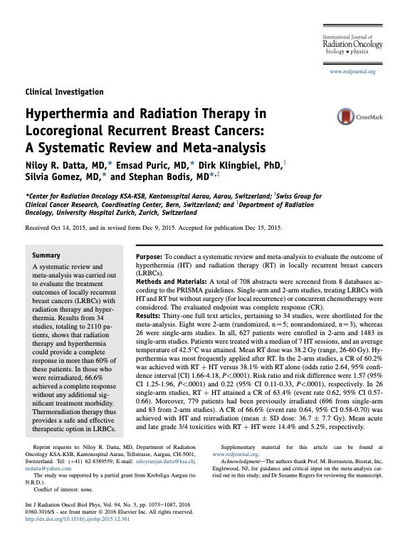 With regards to chemotherapy, hyperthermia targets its action within the heated tumor region without affecting systemic toxicity. It has also been shown that local hyperthermia has the capability of inducing systemic anti-tumor immune responses.